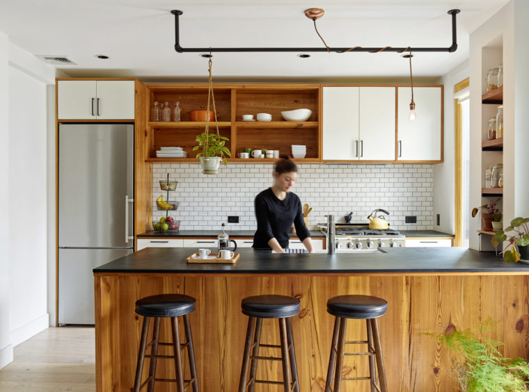 This gut renovation of an existing Brooklyn row-house combined reclaimed elements with off-the-shelf items to fit the client’s budget and urban aesthetic.